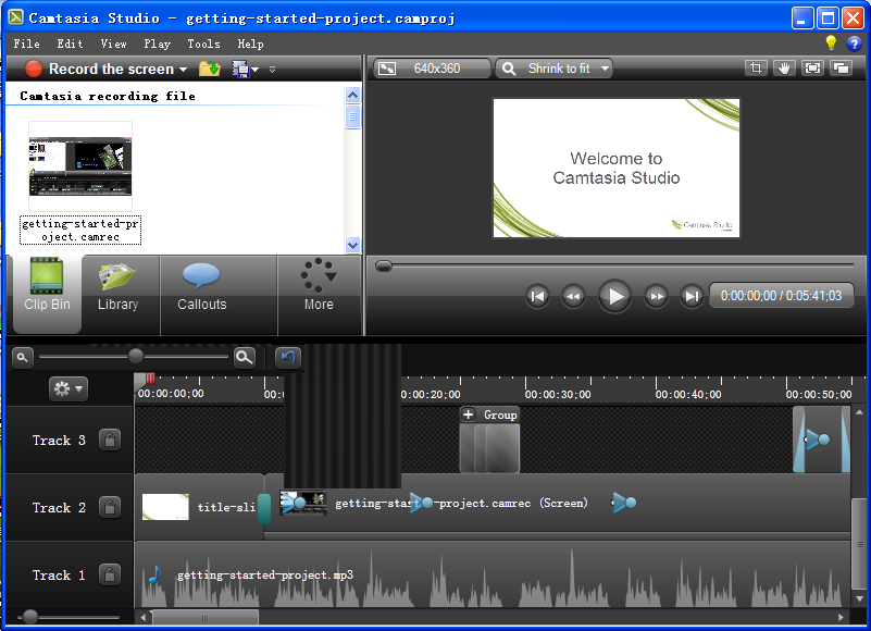 Camtasia Studio是TechSmith旗下一款专门录制屏幕动作的工具,它能在任何颜色模式下轻松地记录屏幕动作,包括影像、音效、鼠标移动轨迹、解说声音等等;另外,它还具有即时播放和编辑压缩的功能,可对视频片段进行剪接、添加转场效果。它输出的文件格式很多,包括Flash(SWF/FLV)、AVI、WMV、M4V、CAMV、MOV、RM、GIF动画等多种常见格式,是制作视频演示的绝佳工具。