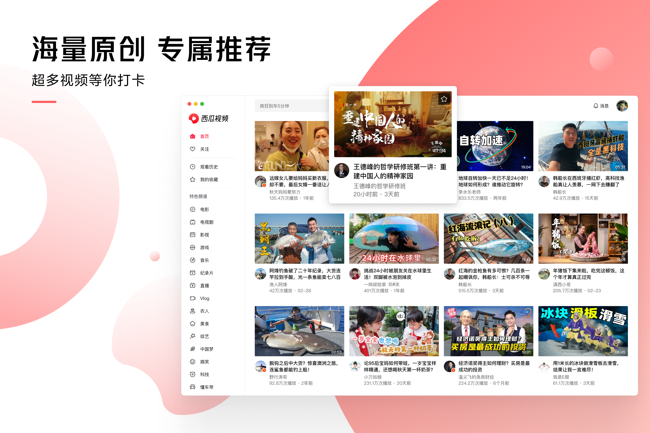 西瓜视频是一个开眼界、涨知识的视频软件,作为国内领先的中视频平台,它源源不断地为不同人群提供优质内容,让人们看到更丰富和有深度的世界,收获轻松的获得感,点亮对生活的好奇心。