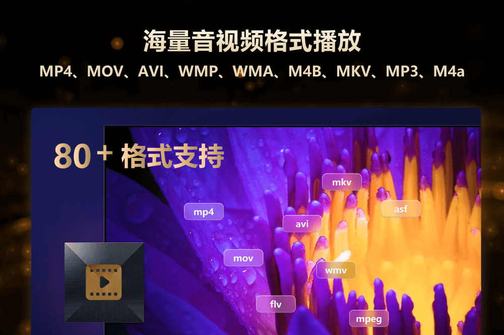 支持解码超过100+视频与音频文件格式随心观看,如: