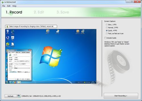 一款国产免费的桌面操作录制软件。400KB的小巧身形,采用全新的SSCV2高压缩,保证结果文件小。录屏同时,还可用麦克录音作为解说。软件可捕捉全部屏幕或部分区域,捕鼠标移动和点击,麦克声音(作为解说)为exe,文件高度压缩。