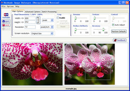 一款无损图像放大软件,一些较小的图片也可以在尽量维持图片质量的基础上被很好的放大。软件用户界面简洁大方,操作非常简单方便,即使你是新手也可以轻松使用。运行软件只需在“Zoom”下面输入想要放大的倍数,或者是直接在“New Size”输入新的图像尺寸;完成后Reshade将会进行即时处理,稍等片刻之后就能看到放大处理后的预览图了。