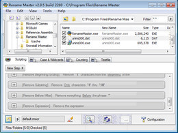 文件重命名专家,支持音频,视频,图片,网页及任何文件的重命名,轻松的新增,删除,取代部分文件名,并且支持文件属性,MP3歌曲标签,JPEG/JFIF/EXIF图片文件标签的重命名。