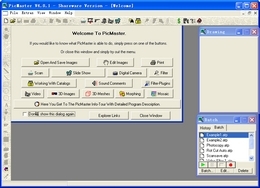 Picmaster可以帮你快速轻松地编辑图形文件。功能相当广泛,包括简单的扫描、使用滤镜、把图形文件放到大型海报目录之中、抓取影音画面、网络摄影机、幻灯片播放、3D浮雕画面。photoshop的滤镜都可以用在这个软件之上,你也可以记录音效指令到图片之中,让你的幻灯片播放更有真实的多媒体效果。一个看图管理工具让你可以以许多方式管理你的图形文件,网络摄影机画面也可以上传,另外还有许多功能等待你去发掘。