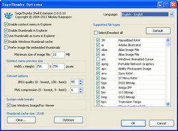 SageThumbs是一个小巧而便利的图像预览及转文件软件。不同于其它功能类似的软件,SageThumbs只需在图片上按一下鼠标右键,在拉出选单中就可以进行所有的功能,像是预览、显示图文件信息、转文件及E-AMIL发送等。软件使用了XnView的GFL库,支持超过160种图像格式。