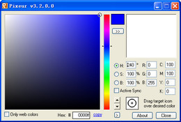 Pixeur是一套方便好用的颜色色码查询软件。你只要将网页或图片上看到的颜色拉进Pixeur窗口里,它就会将此颜色正确的RGB值、十六进制色码与Long Value显示出来。