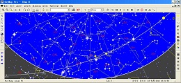 将天空呈现在你的电脑屏幕上,让你重燃对星星的梦想!在这个软件中,它显示了由地球看到天空从西元前4000年到西元8000年的星座分布。有两种显示的模式,一种是“Horizon”,模拟一般观察者在地面所看到的景象,一种是“SkyArea”,你可以选择天空中一小块的区域,加以放大,所显示出来的景象。观察星星的时候,不同的观察地点、温度、大气压力、观察角度,以及现在的日期与时间都会影响我们所看到星空。你可以更改上述所说影响的因素,选择全球各地主要的城市,甚至你可以选择台北!观察的角度、方位,再输入温度及大气压力,抹不开输入日期与时间,这时你就能够从屏幕上看到一张完整的星座图了。你也可以将显示出来的天空存成BMP的图档,或是用打印机打出来。
