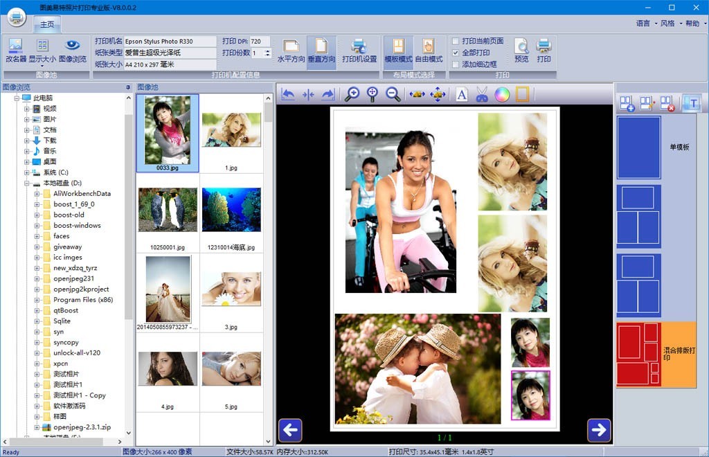 图美易特照片打印软件是一款专业的打印照片的软件,帮助用户排版布局,快速批量打印照片(图像)。通过自由手动方式和模板方式在照片纸上布局各种尺寸的照片,并且一次可以布局多张页面。快速方便地实现批量打印。打印预览功能帮助用户在打印前预览布局的照片。多种调色编辑功能帮助你轻松地对照片调色弥补照片的质量色彩缺陷。还提供了近50张简单色边框及相框单素材,并且用户还可以添加自己的相框素材,简单快速地对照片进行合成。直观的界面设计使得用户可以轻松安全地对打印机的纸张类型,大小,打印机的DPI进行设置。使用她能帮助你提高效率,节约纸张,节约时间。
