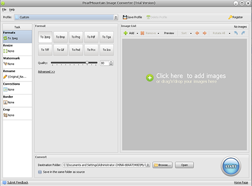 是一个高效,便捷的图片转换器,批量转换与处理图像。它允许您将图像转换为其他格式,调整大小,旋转,裁剪,加水印,应用效果和添加边框数千张图片的时间。只需点击一下您的数码照片将是适合的网页,博客,电子邮件,照片打印,脸谱,MySpace上,手机…等。此批量图像格式转换器支持60种图像格式,包括流行的:JPEG,BMP,TIFF,PNG,PSD,GIF,TGA,ICO,PDF,RAW和其他。