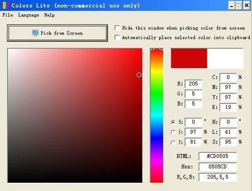 Color 颜色选择器,可以帮助您轻松选择使用各种托盘所需的颜色。它也能够从当前显示的画面内容选择一种颜色,并支持多种不同的颜色模型,即RGB,HSV,HLS,CMYK。