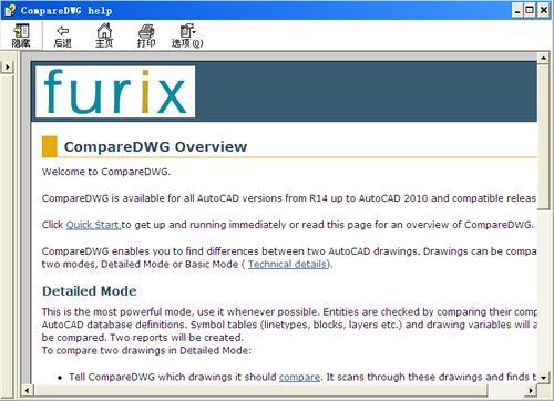 CompareDWG 是用来比较两个 DWG 图形之间差异的工具,用它可以非常快速的找出两个图形文件的不同之处,并用不同的颜色标注出来,还可以生成详细的报表,让你对图形的变动一目了然。此软件对于图纸被他人修改过后却苦于无法找出被修改的地方非常有用。