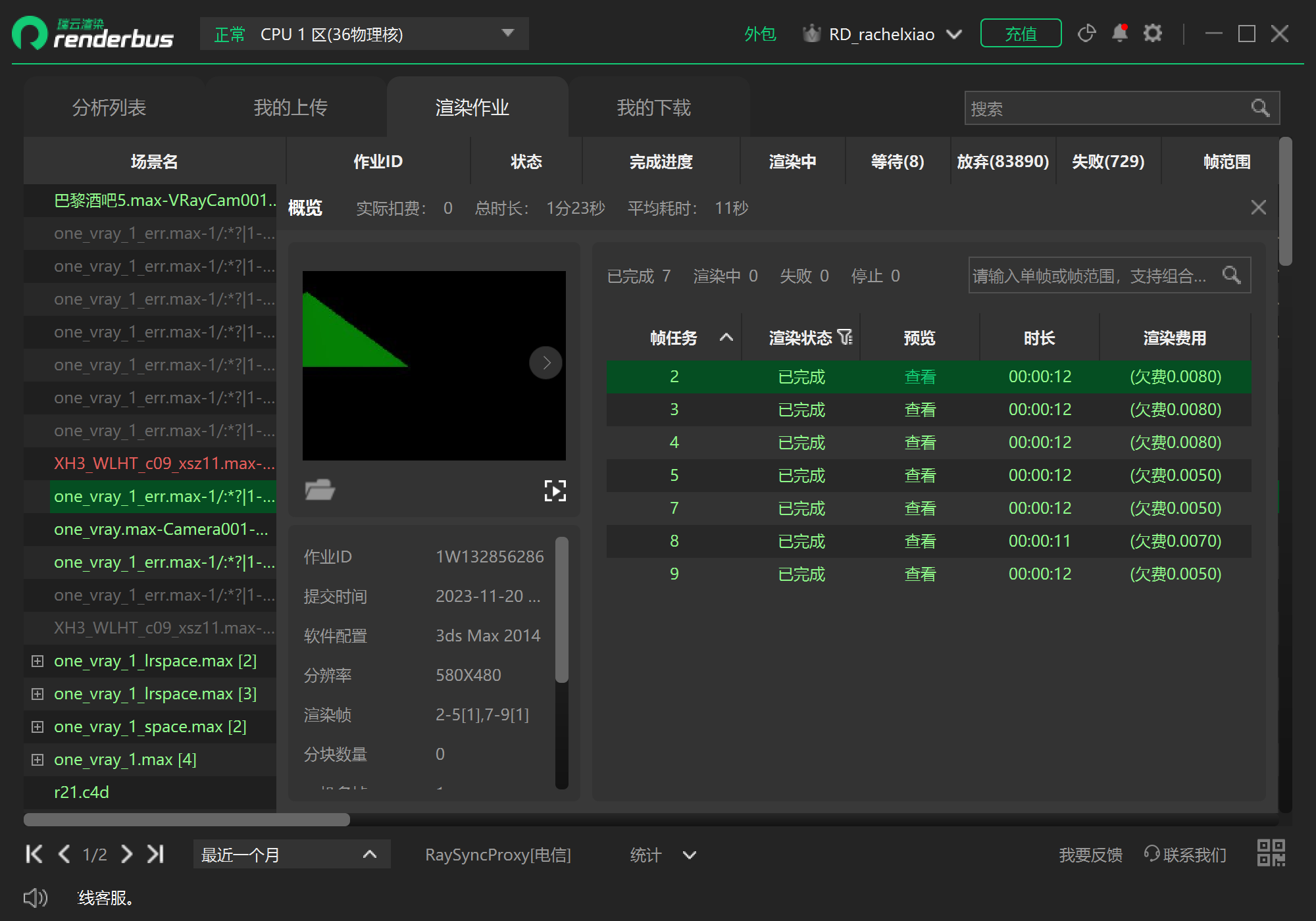 主要功能 一站式批量拖拽提交作业,自动分析,上传,渲染,下载 完美支持所有路径,自动查找及上传所有贴图等资源 渲染软件插件支持全面,插件配置云端化 自动压缩,多线程上传下载,并可任意调配下载优先级 支持客户预定义优先渲染帧,提前查看效果 项目式管理,下载目录按项目定制化 云存储文件高度匹配客户自身目录结构 全自动计算费用,渲染失败不计费