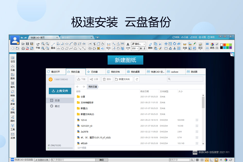 经典的轻量化CAD空压选项设计工具,专业功能齐全,快速智能选型、快速绘图,轻松完成专业标注,快速插入专业符号、一键形成清单报表,专业图库大幅提升工作效率。软件小安装速度快,操作简单,完全脱离AutoCAD,画图功能齐全,独有的特色功能,免费赠送100M云盘,图纸安全同步,轻松分享。软件简单易学,是Windows平台下必备的CAD画图工具。部分VIP功能需收费。