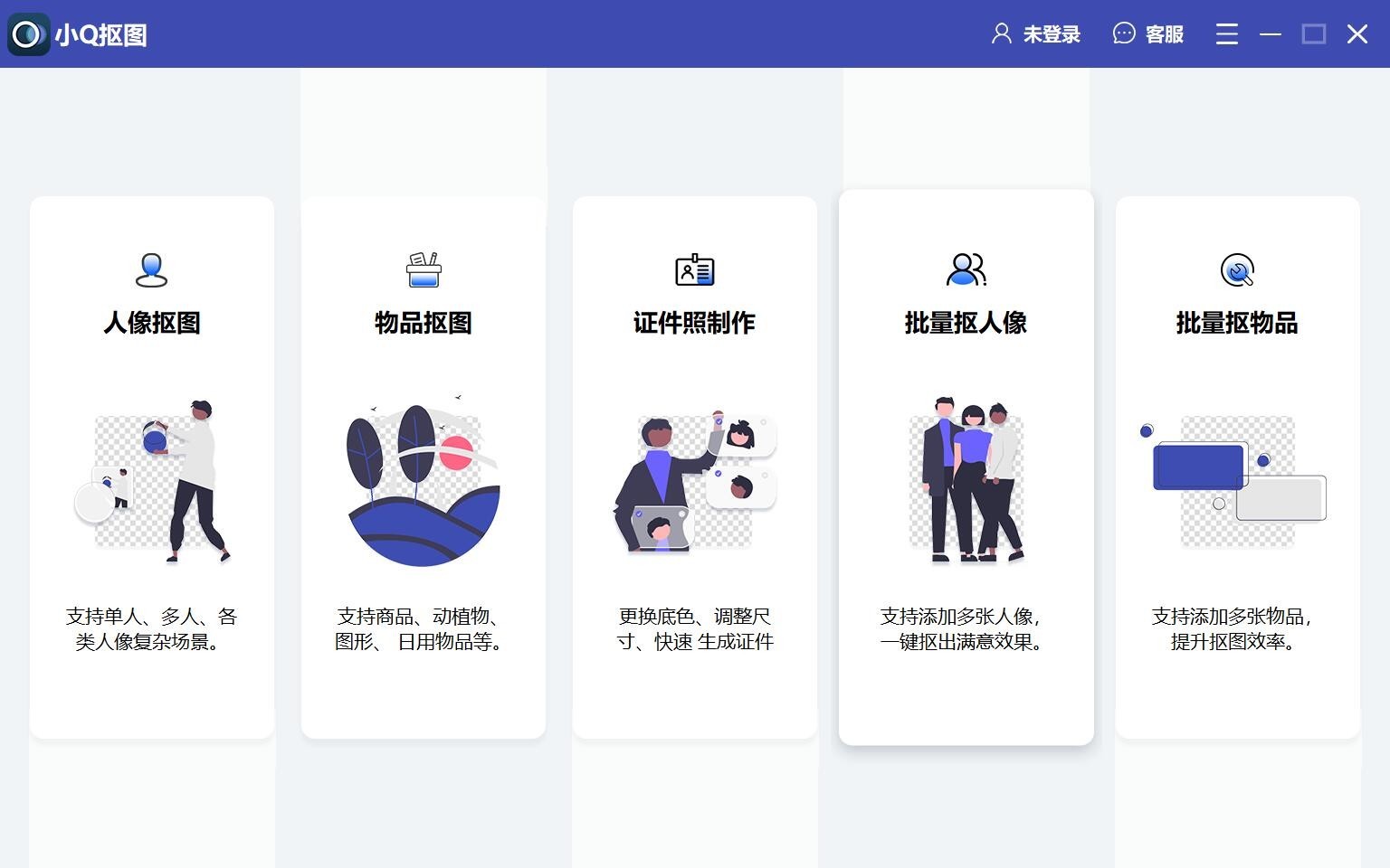 小Q抠图软件,一键抠图换背景神器。一站式专业级的抠图、修图工具,采用了人工智能AI进行自动抠图。不用ps,无需任何作图、修图技巧,一键抠图,支持批量抠图,更换背景,证件照制作,添加滤镜等。操作简单,新手小白也能操作。