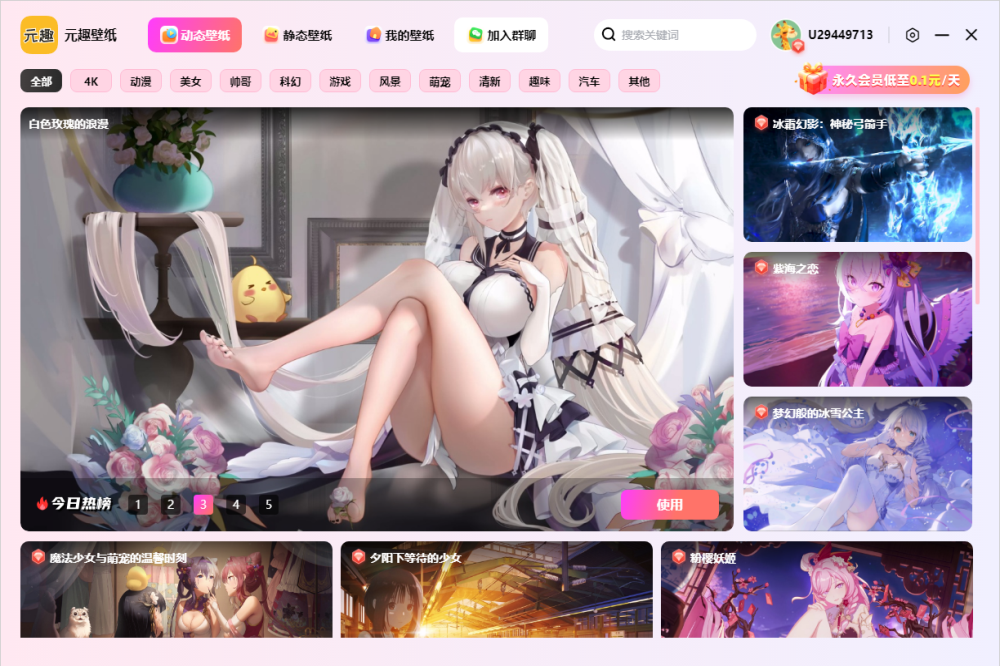 元趣壁纸:您的桌面美化专家。这款高端壁纸应用专为追求卓越视觉体验的您设计,提供无与伦比的个性化桌面方案。我们的库存中拥有丰富的超清壁纸资源,覆盖从壮观风景到可爱萌宠,从温馨小清新到前卫二次元的多种风格,确保每一位用户都能找到心仪的桌面风格。 动态壁纸:我们的动态壁纸库每日更新,分类详尽,带给您生动活泼的桌面体验,仿佛置身画中。 静态壁纸:海量4K超清静态壁纸,一键设置,轻松提升桌面清晰度与视觉效果。 电脑主题:精选创意电脑主题,一键点击即可彻底改变您的桌面风貌,让美化不再复杂。 系统美化:提供多样的系统美化选项,包括鼠标和图标的个性定制,让您的电脑界面独一无二。 桌面整理:强大的桌面整理功能,帮助您一键整理桌面文件,优化您的工作流程,提升工作效率。 选择元趣壁纸,让您的电脑桌面变得生动、有趣又充满个性,每天都充满新鲜感。