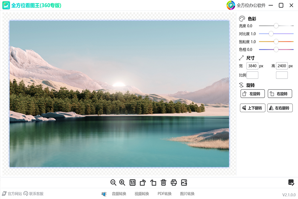 一款免费,功能全面的看图软件 图片编辑,图片预览,查看图片,打开图片,浏览图片,图片读取,加载图片,图片裁剪 全方位看图王是一款界面简洁、体验良好的产品,它提供纯净的看图模式,能秒开各种图片,丝滑无卡顿,图片色彩显示效果极佳,同时支持多种图片格式,功能丰富却体积很小,是学习工作必备的高效率图片软件。支持格式:jpg,jpeg,png,bmp,tiff,cr2等
