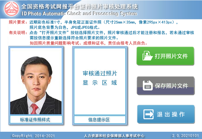一、为提高报名效率,在注册和报名考试前,报考人员须使用照片审核处理工具对照片进行审核,只有通过审核的照片才能被网报系统识别进行正常上传,否则无法完成后续报名操作。