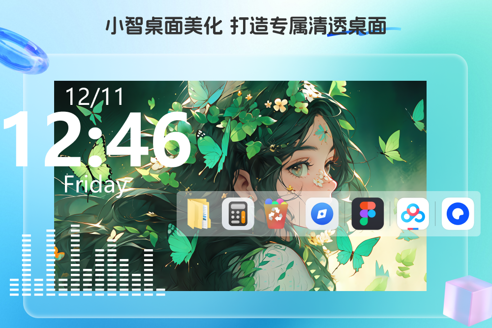 一款专业美化Windows系统桌面的工具,小智桌面美化!让您的Windows从此更漂亮、更个性化!本软件功能强大,能改变您的Windows界面诸多风格。不仅拥有任务栏透明,Dock任务栏,节奏声浪,时光浮窗,而且支持很多细节优化,给您一套完美桌面美化的解决方案。本软件内置还原功能,免除您的后顾之忧;界面美观大方、操作简单方便、电脑新手也能轻松打造出漂亮、个性化的Windows桌面。