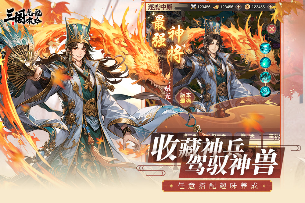 在《三国虎啸龙吟》中玩家将化身诸侯,率领千万兵马征战各路强敌,还原经典狼烟战场,全天无限制自由国战,每一座城池均可争夺,发展内政、招募将领、封地建设、巅峰对决,想要成为三国最强霸主吗?赶快放马来战吧!