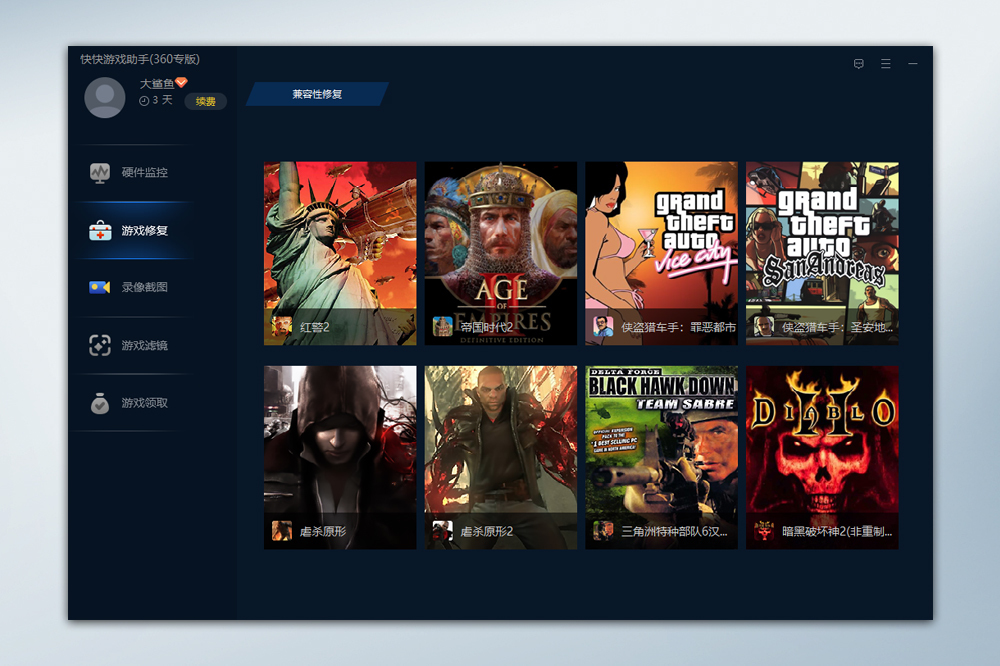 快快游戏助手提供游戏错误修复功能,帮助用户解决启动失败、卡顿等常见问题。软件支持硬件检测,实时监控电脑性能,确保系统满足游戏运行要求。此外,软件还具有屏幕录像功能,可以捕捉游戏精彩时刻,并保存为视频。游戏画面叠加特效功能为用户提供个性化的视觉体验,增强游戏画面的表现力。通过这一系列功能,快快游戏助手为玩家打造了一个更加流畅、丰富的游戏体验环境。