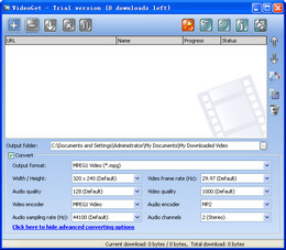 VideoGet是一款高性能的在线视频下载工具。它可以让你轻松网络上的视频。它还可以自动的帮助你转换视频格式 (avi, mpg, flv, mp4),并支持批量转换。