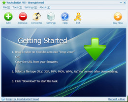 YoutubeGet是一款可以帮助你快速的下载Youtube视频(*.FLV)并可将所下载的视频同时转换成为AVI,WMV,MOV,MP4,3GP视频文件格式的软件