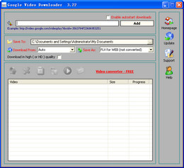 Google Video Downloader可以下载并保存 Google 视频( google.com ) 到你的PC, Ipod, Iphone, PSP,手机上,保存的格式支持avi, .mpeg, .flv, .wmv. 只需把视频的URL地址粘贴到本程序里,并选择保存位置和保存格式(AVI, MPEG 或FLV ),视频就会自动下载到指定的文件夹中。