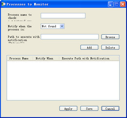 Process Notifier是一个进程监视和提醒器,当你指定的进程处于“开启/关闭/创建/未创建”状态时,它会自动向你事先指定的邮箱发送提醒邮件,告知你该事件的详细情况,或者向你发送含有桌面截图的邮件,适用于全天候监视PC使用。无须安装即可运行。