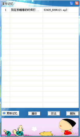 提供对在线听过的音乐,进行记忆的一款多媒体收藏管理软件!各大在线听歌网站都适用,可以帮你记忆管理起来,供你日后回味!使用没有歌曲,当在线听过音乐后,点击更新记忆将可以看到全新记忆的音乐!