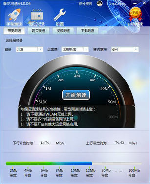 泰尔测速软件主要功能包括:接入宽带测速,用户体验测速及网络辅助指令采集等功能,能够从多个角度呈现用户的网络状况。