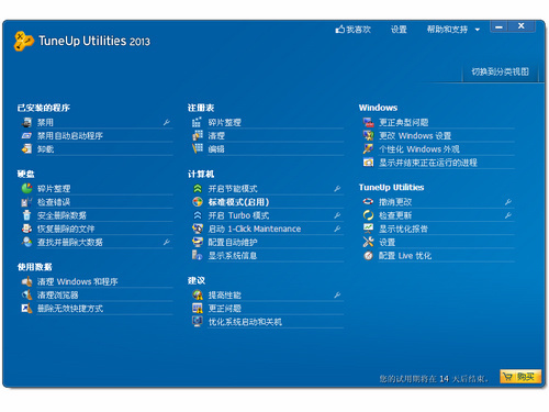 一款来自德国的系统优化软件,TuneUp Utilities 可以优化你的电脑性能,帮助解决问题和根据你的需要定制你的个性化系统,它还扩展你的操作系统能力,你可以使Windows运行更快,更安全,使用更舒适。