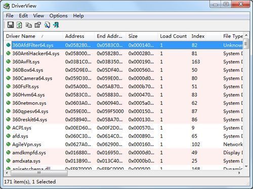DriverView是一个用来显示你电脑里的设备驱动程序列表的小工具。DriverView还可以为所有驱动程序生成HTML格式的报表。如果你想获得其他格式的报表,只需选中需保存的驱动程序,然后使用“保存所选的项目”选项下的文件菜单。