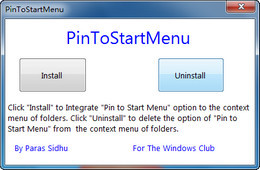 PinToStartMenu 这个便携应用程序可以让用户通过使用右键菜单即可将文件夹、控制面板项目附到开始菜单!很是简单!打开PinToStartMenu后,点击Install安装后,在任意文件夹上按住shift 同时点击右键,即可出现“附到开始菜单”项;对于控制面板,直接在项目上点击右键即可看到“附到开始菜单”的快捷菜单!
