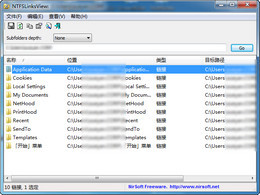 NTFSLinksView能够显示所有的符号链接,可以查看由junction.exe命令建立的符号链接。从Windows Vista开始,微软使用符号链接和交接点以保证与旧应用程序的兼容性。这个小工具能够枚举出指定文件夹的所有符号链接及路径。