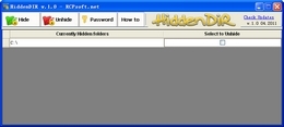 hiddendir是一个隐藏文件夹的免费小程序,无须安装解压即可使用。用它可以方便的隐藏不同分区上的文件夹,包括u盘。你还可以为hiddendir本身设置一个口令,这样只能你自己打开该软件。hiddendir并非加密软件,适用于要求不高的用户使用。