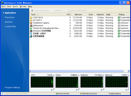 是一个功能强大的任务管理程序。Auslogics Task Manager可以显示多少CPU,内存,磁盘或网络带宽的使用情况是由您的计算机上运行的进程使用。该方案也将显示你的服务和打开的文件。