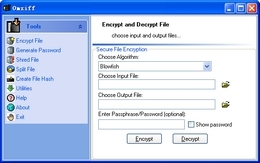 Omziff 是一款简单的加密软件,它能使用各种不同的加密算法来加密或者解密文件。