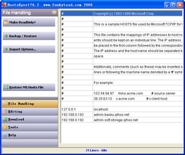 可以替换记录、合并 HOSTS 文件、切换127.0.0.1记录为0.0.0.0等的编辑器软件。该软件主要用于提交间谍软件,广告软件和广告拦截。该软件包括一个用于编辑文件内容的内置的文本编辑器,一个下载和合并拦截文件(MVPshosts,hpHosts)的选项以及一个用于备份和恢复原始 HOSTS 文件的功能。这是一个独立的软件,不需要安装。