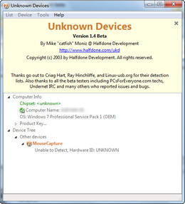 Unknown Devices会自动扫描系统上的硬件,也会自动判断这些硬件是否正确安装了驱动程序。后还会在界面上提示你设备管理器中未知设备的型号。