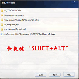 袖子文件收藏夹可以快速打开你收藏的文件和文件夹,只需快捷键“SHIFT+ALT”打开软件,然后选择要打开的文件或文件夹即可。每次节省一点时间,累积下来能为你节省了大量的工作时间,极大的提高工作效率。在电脑上,无论是工作还是娱乐经常要用到的文件夹或者文件就那么几个,还经常隐藏在很深的路径下,每次要打开都要一个一个的路径进去,点击好多下,无意中关掉了窗口还得重新打开,就这样每天浪费了大量的时间在微软的文件系统上。当然,在桌面建快捷方式的方法也可以解决问题,但是,考虑到在桌面的图标海洋中找到你要找的快捷方式也不是那么容易。另外,想要到桌面去,还要先小化所有打开的窗口,也会打断工作的连续性。收藏只需在文件夹内或者文件上鼠标右键,选择“添加到 袖子文件收藏夹”即可。