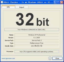 检查你安装的系统是32位还是64位windows,还可以查看你的CPU是否支持安装64位windows系统。64bit Checker支持把检查的结果复制到剪贴板或保存到文件。