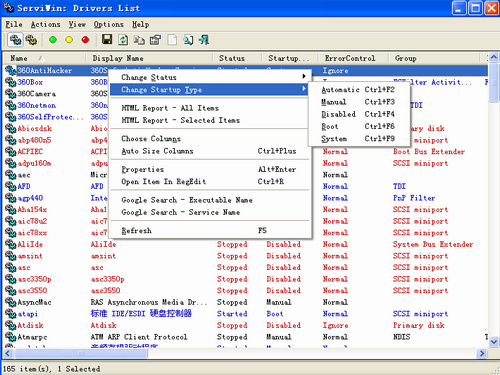 ServiWin 程序可以显示已安装在您的系统中的服务和驱动程序列表。ServiWin允许您方便地控制服务和驱动程序的状态,更改服务和驱动程序的启动类型,以不同的颜色区分不同的状态和启动类型,并可以将列表保存为文件或网页报告。