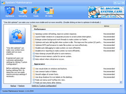 VeeCan公司出品的System Maintenance可以通过删除多余的系统进程和对系统进行优化设置,使系统运行速度加快;还可以通过检测系统补丁更新和防病毒程序更新,保持系统安全。