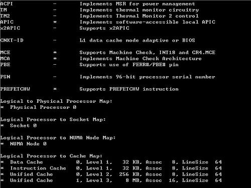 Coreinfo,一种工具,显示 CPU 功能、 高速缓存大小和拓扑中,现在正确 AMD 多核系统上显示超线程支持,并列出了在 Windows XP 上的处理器功能。