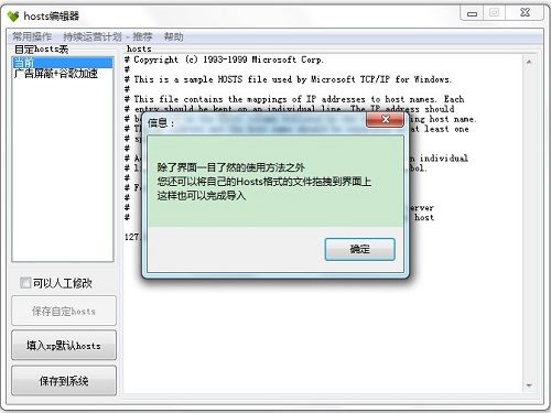 无需任何运行库的hosts编辑工具(hosts editor),这是一款小巧的hosts编辑和切换工具,具备自定Hosts列表,简单的广告屏蔽和谷歌服务加速功能。同时内置有hostsx的数据.
