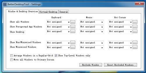 BetterDesktopTool让桌面窗口的排列更为有序并且容易控制。BetterDesktopTool能够更好地利用鼠标和键盘快捷键来安排你的桌面视窗,软件提供了一个全视角的窗口预览界面,你可以在一个窗口中预览所有打开的软件及应用,支持一键切换回桌面。