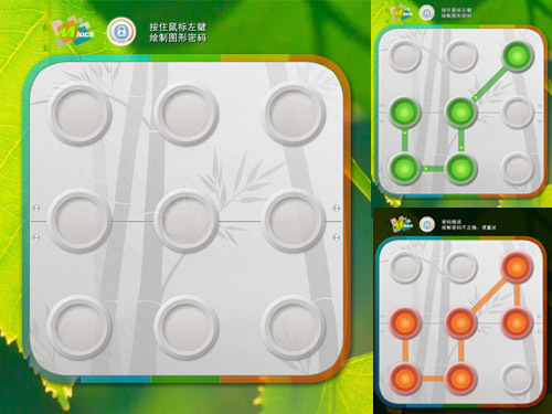 M LOCK 图形密码锁,使用图形密码设置,跟手机上的密码锁类似。可以非常简单方便的实现挂机锁定电脑,而不需要复杂的手动填写密码。该挂机锁工作的时候,可以简易的屏蔽键盘任何按键。