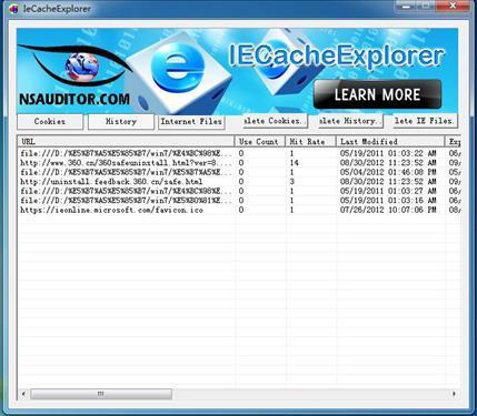IE Cache Explorer是一个Internet Explorer的缓存查看工具,可以对Internet Explorer的缓存文件夹进行浏览。它使用方便,支持所有类型的文件,可以找出其中有价值的保存起来,也可以查询文件的来源。