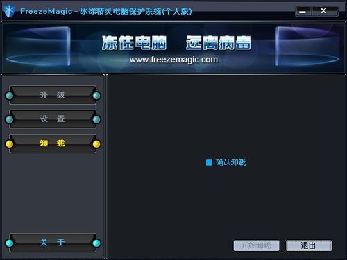 一款专业的计算机保护软件。为您的计算机生成“冰冻映象”,每次重新启动后,您的计算机都会恢复到“冰冻映象”的样子,使病毒和流氓软件无处藏身,从而保护计算机不被侵害。“冰冻精灵”融合了虚拟硬盘、内存管道、I/O 管道技术,不会修改硬盘的分区表,保护更加安全、可靠。卸载提示:运行软件主程序,点击界面左侧的“卸载”按钮即可。