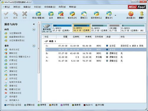 MiniTool分区向导免费版是一款由MiniTool Solution Ltd.公司研发制作的免费磁盘分区管理软件。该软件支持包括Windows XP,Vista,Windows 7,Windows 8,Windows 8.1在内的32/64位操作系统。该免费版的MiniTool分区向导针对Windows操作系统磁盘分区提供了众多可操作功能。包括:分区大小调整,分区拷贝,分区创建,分区扩展,分区拆分,分区删除,格式化分区,分区隐藏,分区盘符变更,设置激活分区,分区删除恢复,FAT/NTFS分区类型互转等基本重要功能。同时该软件兼容IDE/SCSI/ATA/RAID磁盘接口下的FAT12/16/32, VFAT, NTFS/NTFS5,Ext2/3/4等文件系统。