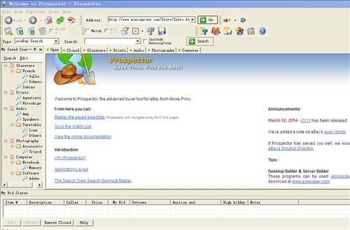 Prospector 协助更快速找到你想要的东西、节省你的时间,和帮助你在 eBay 上赢得拍卖。 你能储存你的搜寻、单独针对eBay作更强力地搜寻﹐用内建的工具赢得拍卖,而且用内建的归档工具把项目表存档。